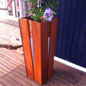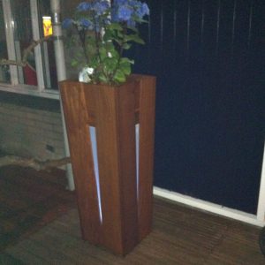 Deze bloembakzuilen hebben aan weerszijden plexiglas voor een moderne uitstraling en voor een mooi licht effect.