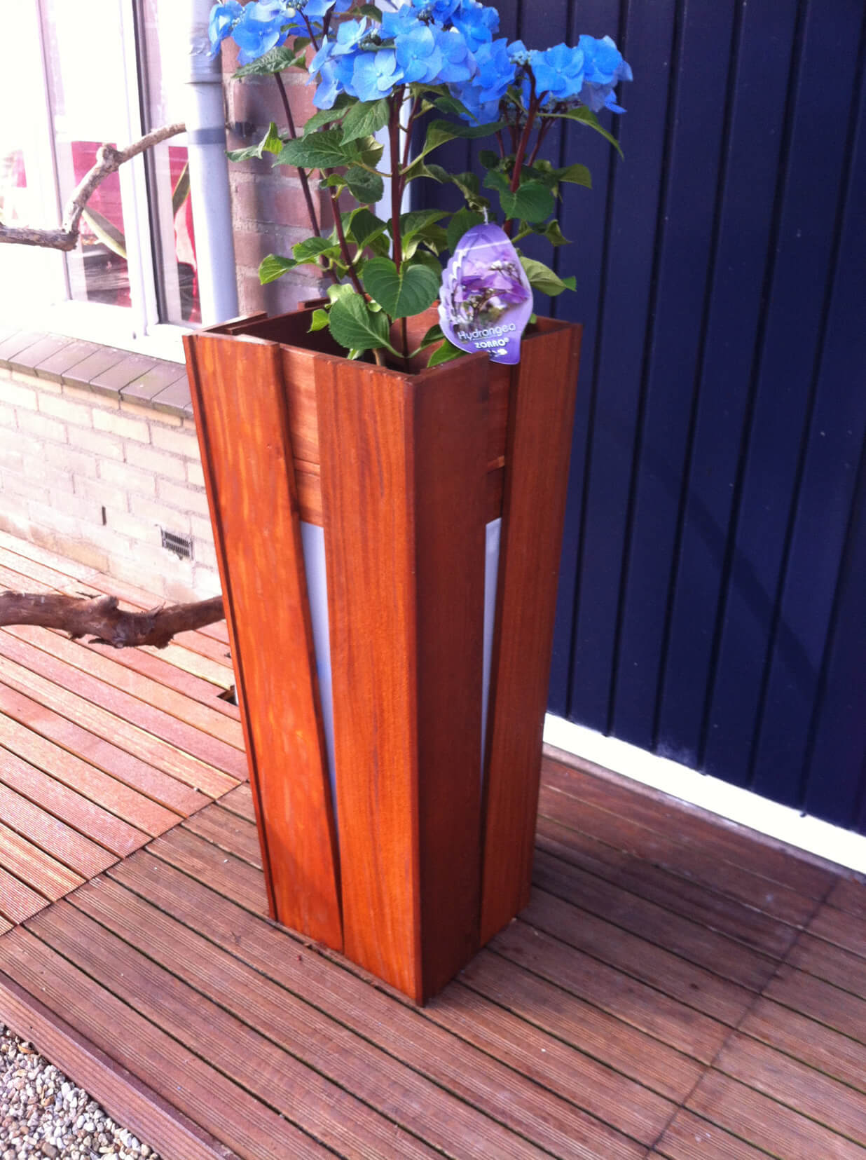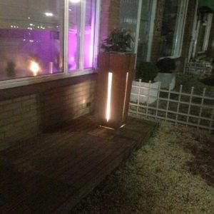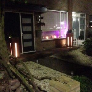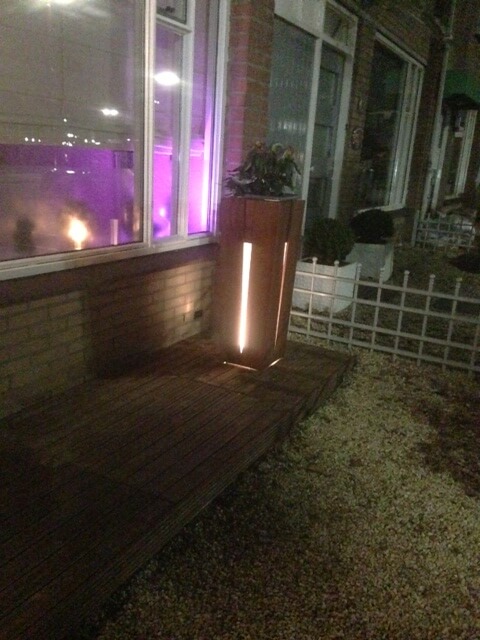 Aan de achterkant zit een luikje zodat je makkelijk bij je verlichting of tuinspullen kan komen. Zeer modern en sfeervol om te zien.