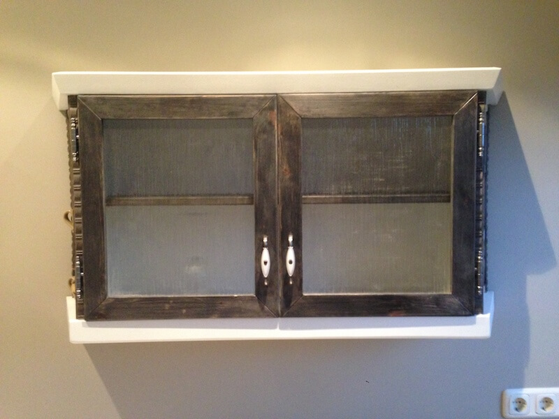 Materiaal : gelakt mdf – Grenenhout – glas – sierlijsten.